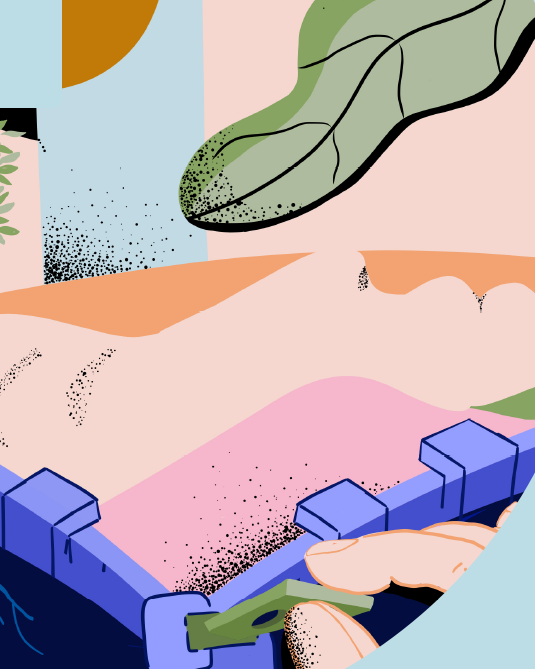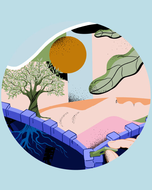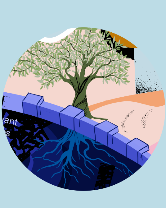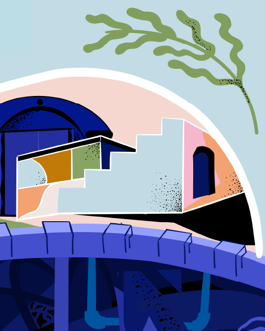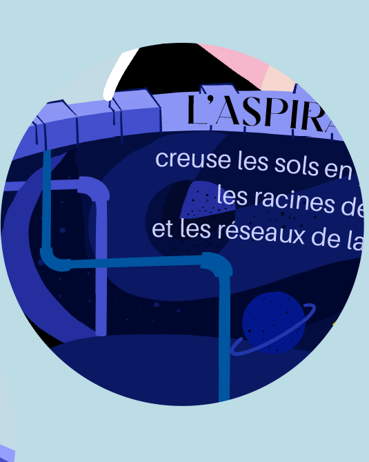 La composition met en dialogue un paysage urbain doux et vivant avec un univers souterrain plus dense, révélant ce qui se joue sous nos pieds.